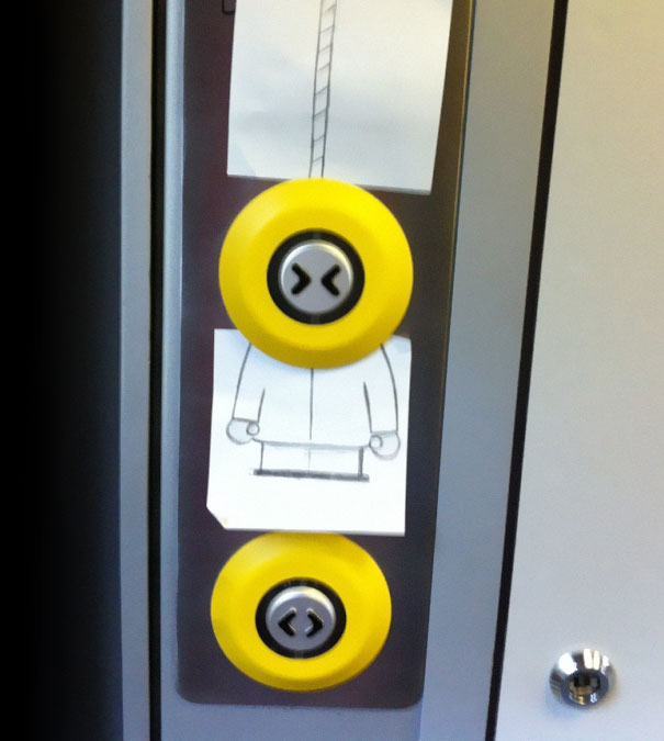 Jones, who is also the guy behind the hilarious and popular Texts From Dog Tumblr (and book), draws cartoon faces on sticky notes that he matches up with the bodies of unsuspecting commuters on the train with him. The cartoon faces’ expressions, however, take it from good to great – Mickey mouse grinding his teeth and a tired-looking Winnie the Pooh who forgot to shave seem right at home on Jones’ Monday-morning commute. He then shares the doodles with his Twitter followers, which he’s got about 72,000 of.