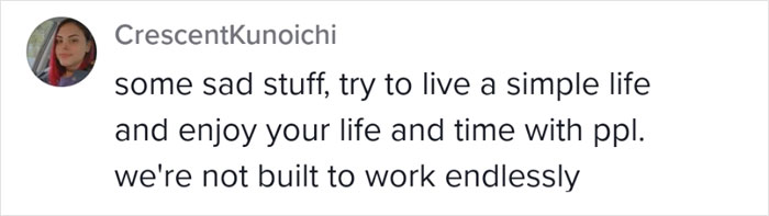 Load More Replies...I work in the language service and linguistics industry and was asked to help manage a translation and localization job of guidebooks teaching workers (specifically women workers) and companies in Japan about work life balance. I remember it being quite sad at points because it mentioned people getting praised for napping at work because it meant that they were working hard. There was also mention of Karoshi, which literally translates to death from work.