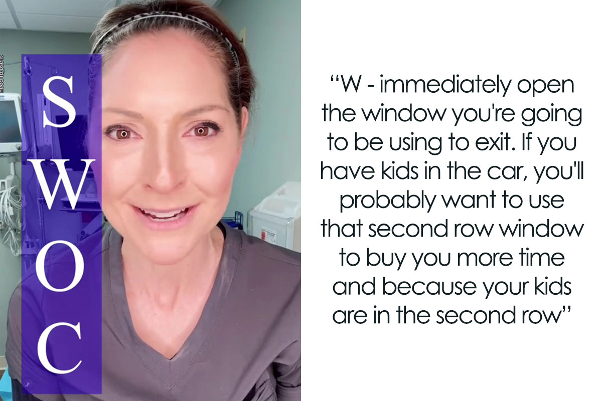 Additionally, under the video, Dr. Darria pointed out a few myths. “Electrical windows WILL open. The issue isn’t the electricity – it’s pressure,” she wrote. She also pointed out that you must get out the window and not try opening doors, don’t do anything else first but SWOC and never get out of the car before your child!