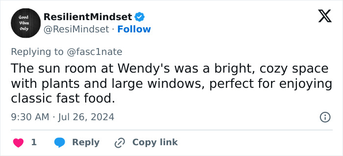 The Wendy's I grew up with had the sunroom listed as the smoking section. I always thought it was super unfair that smokers got rewarded with the best section of the restaurant.