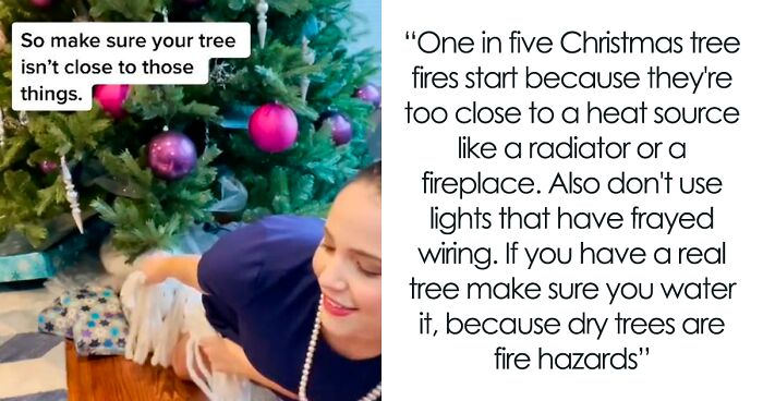 One in five Christmas tree fires start because they're too close to a heat source like a radiator or a fireplace. So, make sure your tree isn't close to those things. Also don't use lights that have frayed wiring, you already know about unattended candles and if you have a real tree make sure you water it, because dry trees are fire hazards.