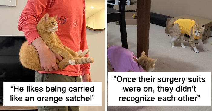 My Girls Got Spayed Today And Once Their Surgery Suits Were On, They Didn't Recognize Each Other