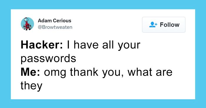 Load More Replies...I have a giant list of assorted passwords in my phone. And then I only need to remember one