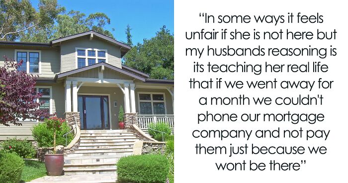 From what I gather, the poster’s husband is adamant about charging the rent, as it is a “real life” lesson that rent never stops, no matter if you’re taking a holiday or not, while the mother mentions that it’s kind of unfair.