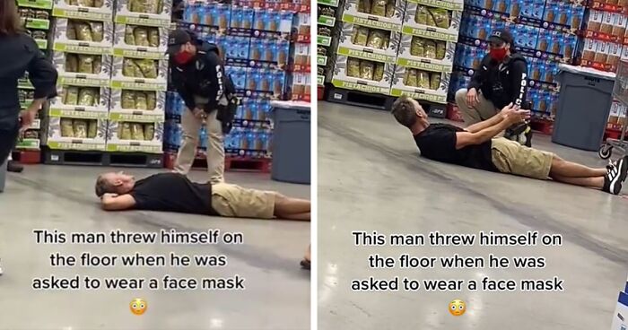 Anti-Masker Gets Roasted Online For Lying On Costco Floor For 8 Minutes To Protest Mask Requirements