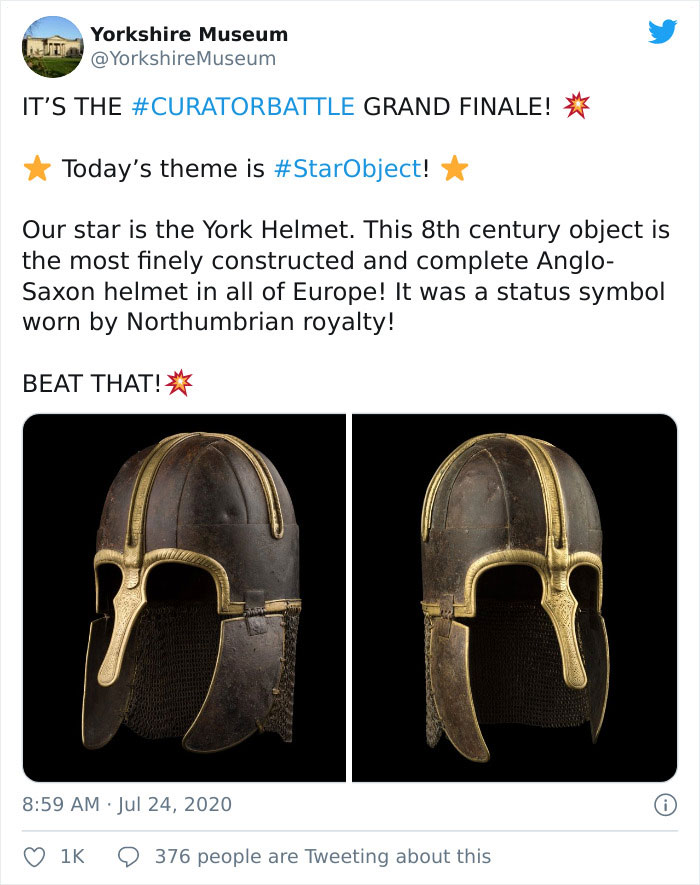 Organized by the Yorkshire Museum, the weekly challenge asks museums to share images of their possessions, trying to find out who has the best ones. So far, each 'competition' had a particular theme. Like, the best bum. Or the creepiest object. However, the #CuratorBattle has reached its grand finale and this time, there are no limits. Museums are giving it their best shots. Continue scrolling and check out their most-prized star objects.