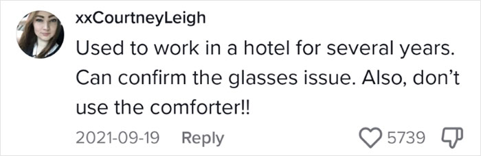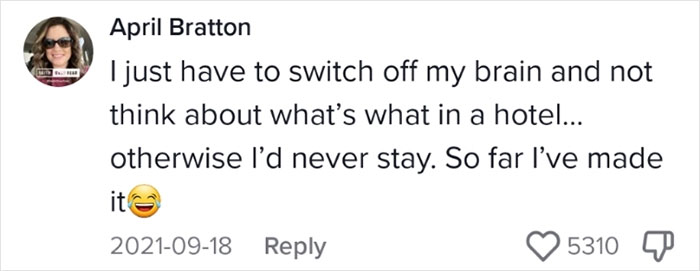 Load More Replies...Having spent a couple of decades working all over Europe and staying in many many hotels, I can wholeheartedly say that most of this utter horsepoop. The only nightmares I have had are one hotel in London that I couldn't actually sit on the toilet without having the door open so I could put my legs out the door, another hotel in London that had cockroaches, and the bedbug incident I referred to above. I've had some very strange hotels, but they were all clean and safe to stay in.
