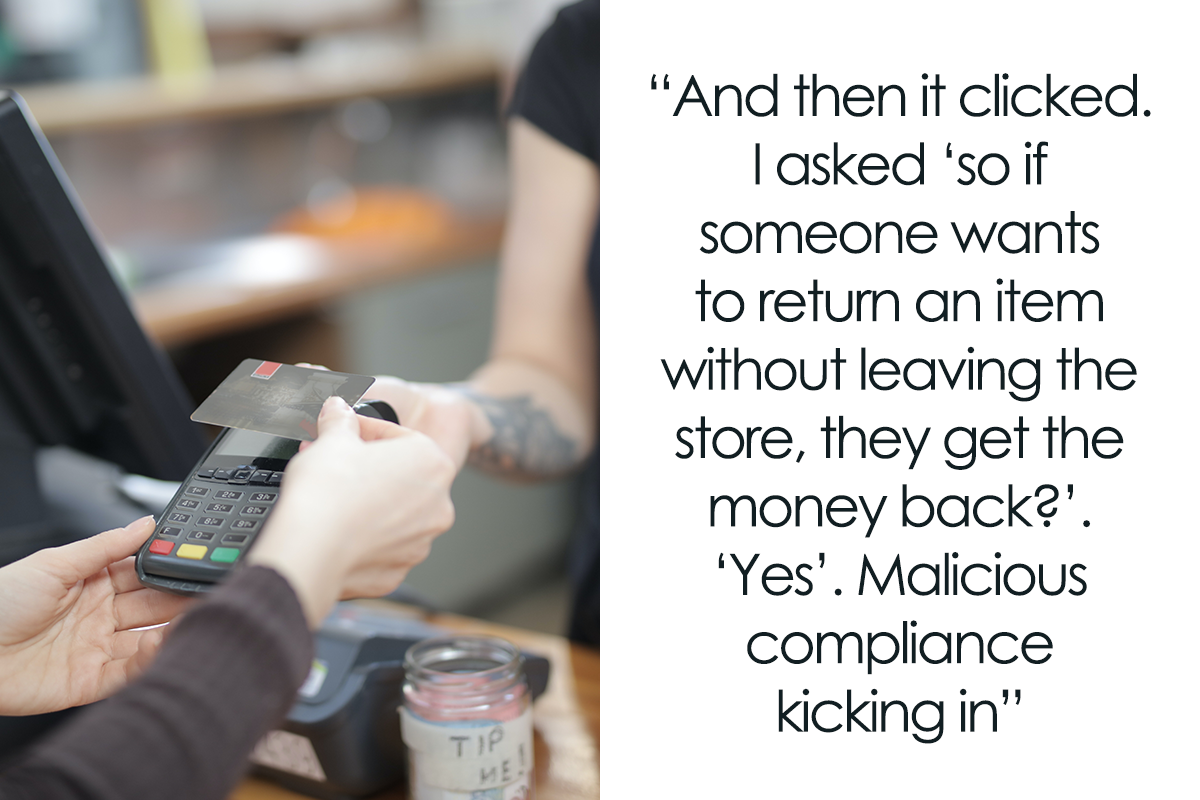 The customer maliciously complied and discovered that bought goods are refundable only when they don’t leave the store