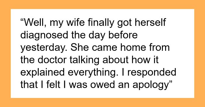 Once the OP’s wife finally got her official ADHD diagnosis, she had an aha moment—you know, the kind where everything suddenly makes sense. But the OP, still nursing seven years of exhaustion, asked for a tiny bit of acknowledgment. You’d think he was asking for a kidney. Instead of, “Thanks for putting up with me,” he got a full-blown yelling session. Makes total sense, right?
