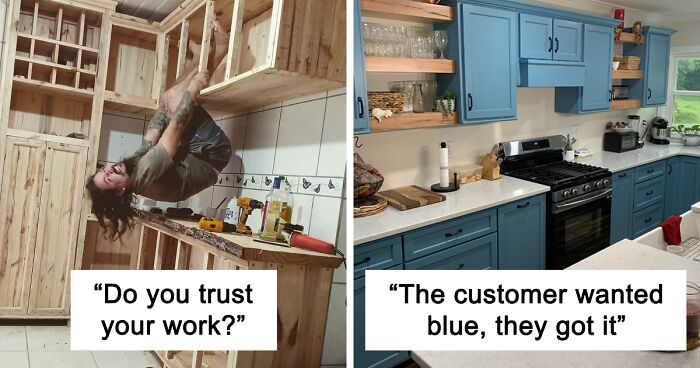 Bored Panda got in touch with redditor u/MeanCoach, who went viral online after posting a photo of himself hanging from this fantastic cabinet right here, with the title, 'Do you trust your work?' He was kind enough to tell us more about the project. Read on for his comments.
