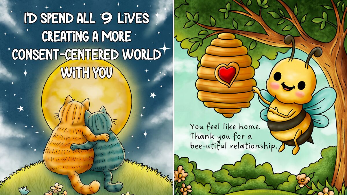 At Recognize Violence, Change Culture (RVCC), we love to create artwork that centralizes consent, healthy relationships and boundaries! Which card is your favorite?