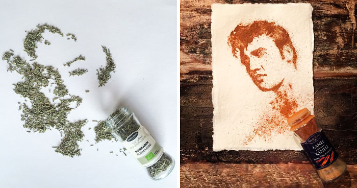 Sometimes I create portraits of famous people or characters that I admire. The material I use is often food, herbs or... well I guess, I use whatever comes to mind.