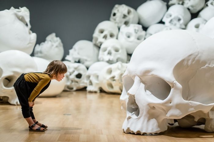 The display is called Mass, a 100 skulls project which is freaking everyone out. they were created by Australian artist Ron Mueck for the Victorian Museum Triennial art-fest. And are still on display till June 2018.