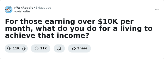 Well, these Redditors most definitely belong to the folding club, as they claim to be earning over $10K a month. Recently, they shared the jobs that help them bring in that kind of income. And no, it’s not just the usual suspects like software engineers or doctors—there are plenty of surprising professions in the mix, including crane operators, dog groomers, train conductors, and *checks notes* companions for Korean women.