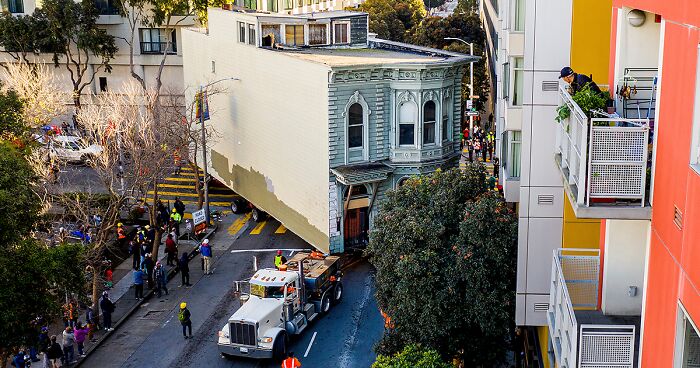 Well, sometimes you get lucky and you don’t have to move house as much as your house has to move. A building in San Francisco recently did just that—it was moved whole blocks to a new address. Like, the entire house was picked up, put on wheels, and transported to a new location. Pretty cool, if you ask me.