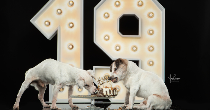 Last year, I did a shoot with Nick and Menno, 2 Jack Russell brothers, who celebrated their 18th anniversary. We thought that would be the last birthday but 1 year later, they are still alive and kicking! Menno lost one eye, they don’t see and hear very well anymore but you can be sure they had an amazing 19th birthday with a photoshoot, cake, and lots of love!