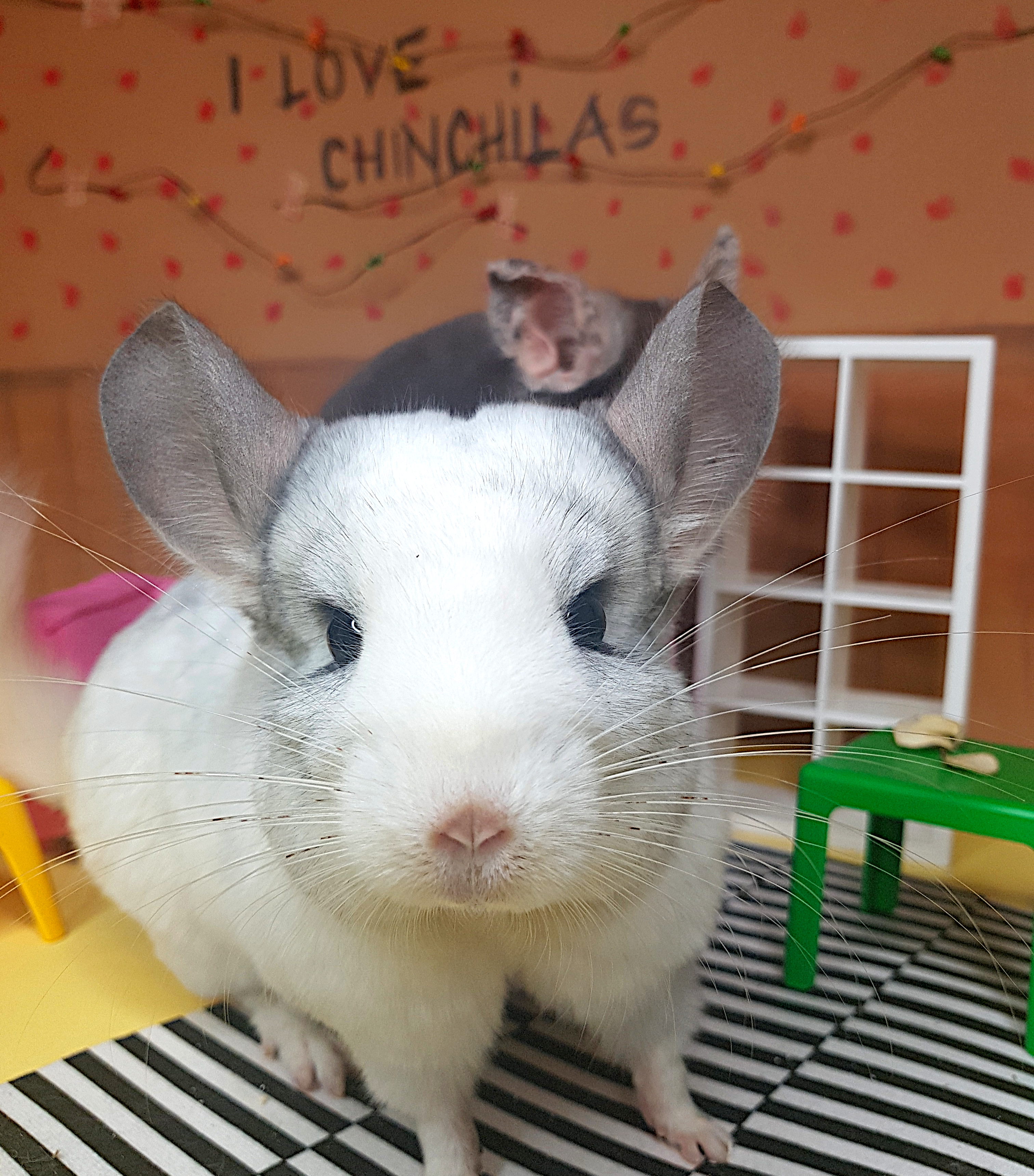 Cotton swab – white chinchilla, loves dried vegetables and loves to be stroked.
