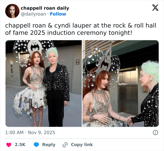 - Chappell Roan inducted Cyndi Lauper into the 2025 Rock & Roll Hall of Fame.