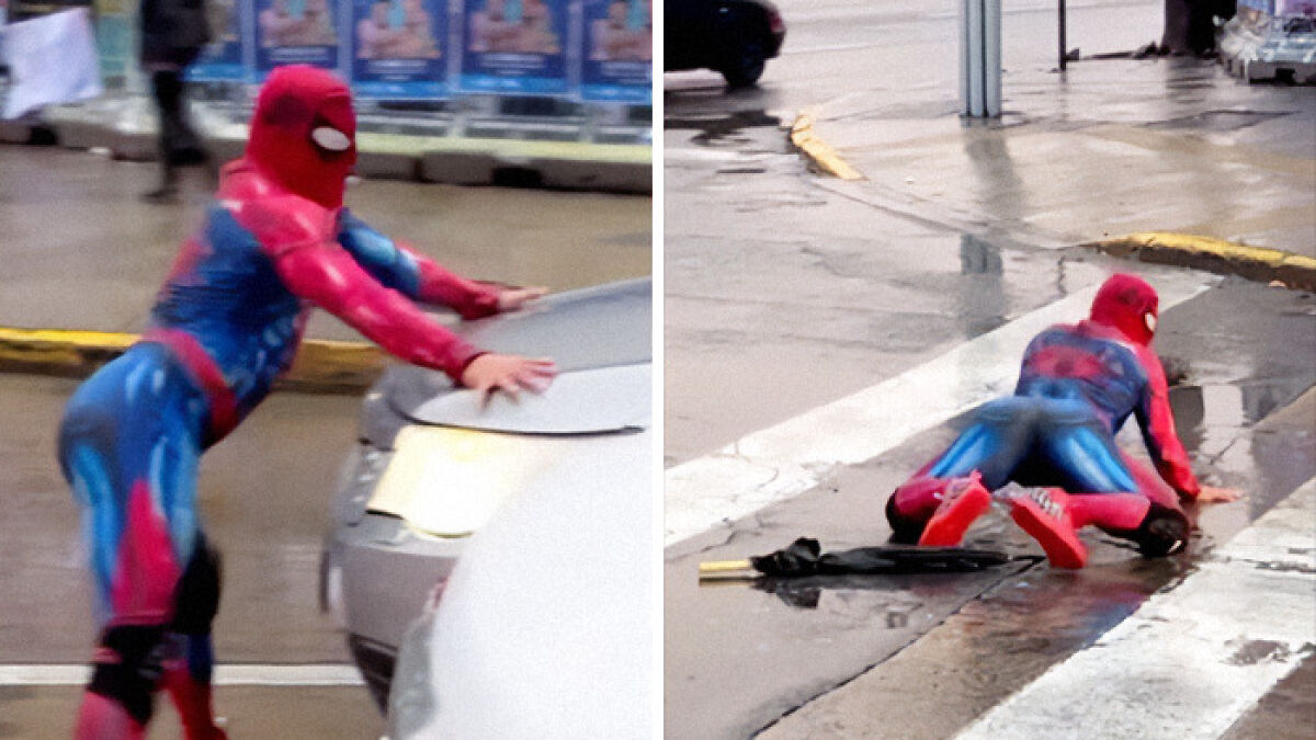 It’s fairly straightforward — a person dressed as Spiderman decided to stop in the middle of a crosswalk to twerk, blocking both the sidewalk and the road.