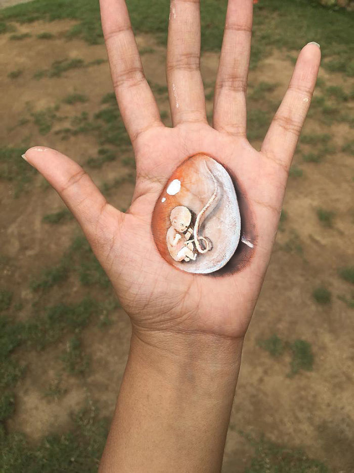 I just like creating 3D paintings on my left hand! It can seem like a weird way to create art, but it's actually really fun to do...