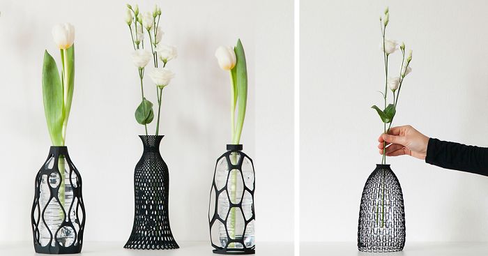 The line of 3D-printed vases includes four designs and gives a second life to plastic bottles