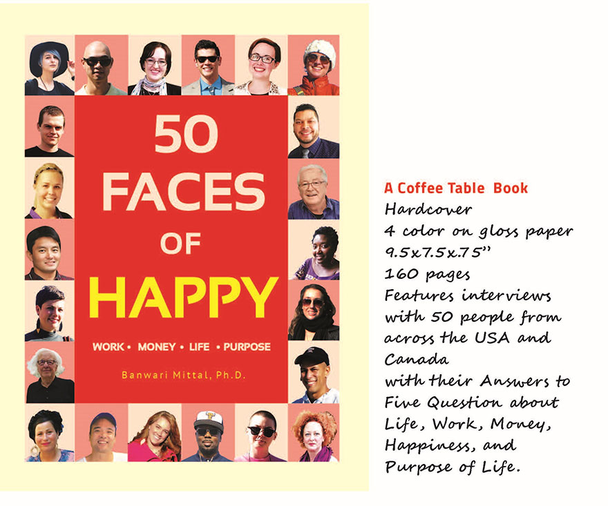 In the new book 50 Faces of Happy, Ban Mittal—a social scientist and professor—explores these questions by sharing the answers from 50 people he randomly met on the street. In 2017, the author set out on a two-year road journey across the USA and Canada to discover what happiness meant to people. Conducting over 500 interviews with people he met at random, Mittal asked them “Five Big Questions” about money, work, life, purpose, and happiness.