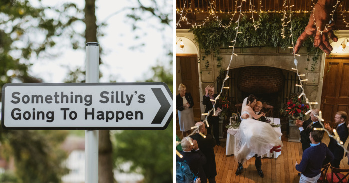 I had a road sign made that showed a silhouette of John Cleese doing his silly walk with the words, “Silly Walks Zone,” and we placed it on the way to the loos, encouraging guests to do a silly walk on the way to or coming back from having a pee. Photo Credit: John Wood