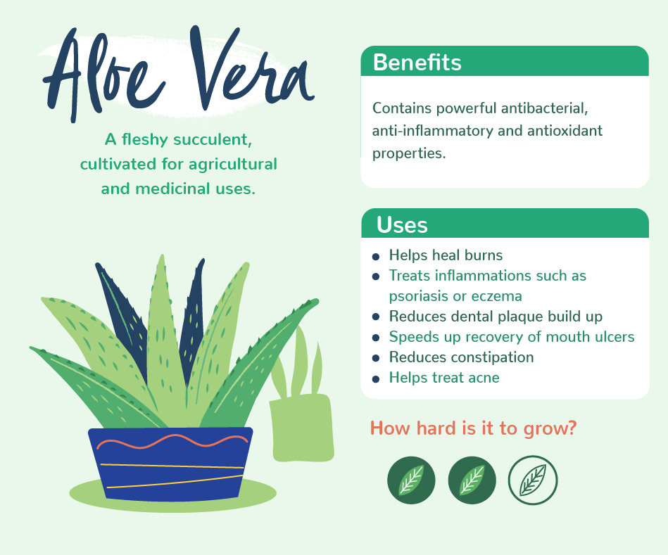 This succulent is a popular choice of house plant as it is low maintenance. However, Aloe Vera has also been used for many years as a natural remedy, it is said to contain powerful antibacterial, antioxidant and anti-inflammatory properties. Aloe Vera has many benefits, it can be used on the skin to heal burns and treat eczema, or ingested to reduce constipation, reduce plaque build-up, and speed up recovery of mouth ulcers. To use Aloe Vera on the skin, snap off a stalk and rub the liquid on the affected area, but make sure to speak to your doctor first in case you have any allergies.