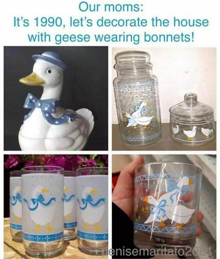 I loved the big concrete geese on porches that could be dressed in different outfits. It was a craft fair staple to have a table selling little dresses and bonnets for those geese