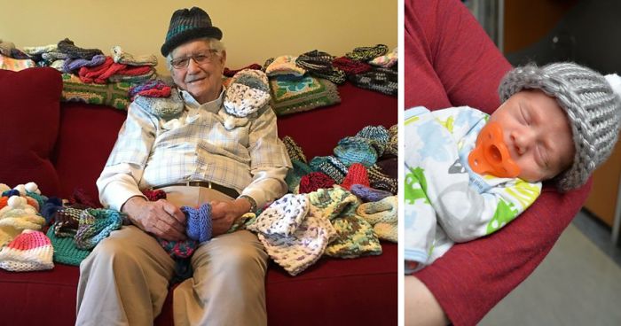 When this amazing 86-year-old senior citizen found out about his local assisted living facility’s plans to knit tiny wool hats for premature babies he knew he had to be a part of it.