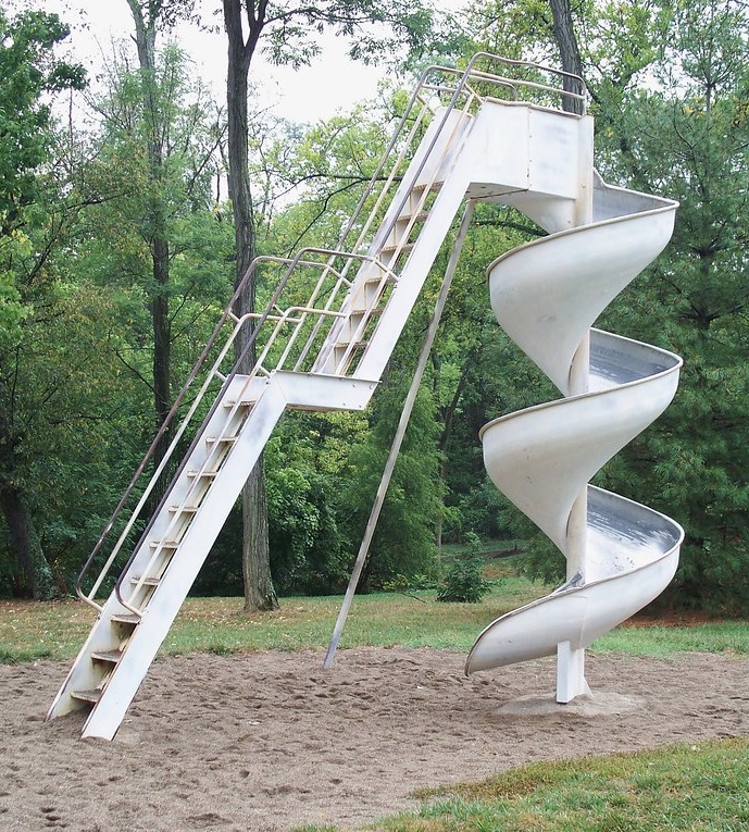 Oh the days of the metal slide. You come down with red marks in the back of your legs.