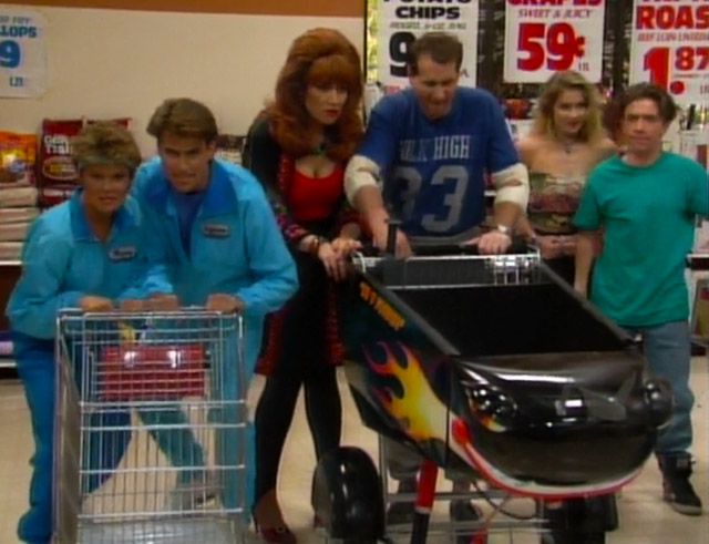 '90s nostalgia with Walmart rollback bag, Game Boy Advance on display, Ronald McDonald bench, and video rental section.