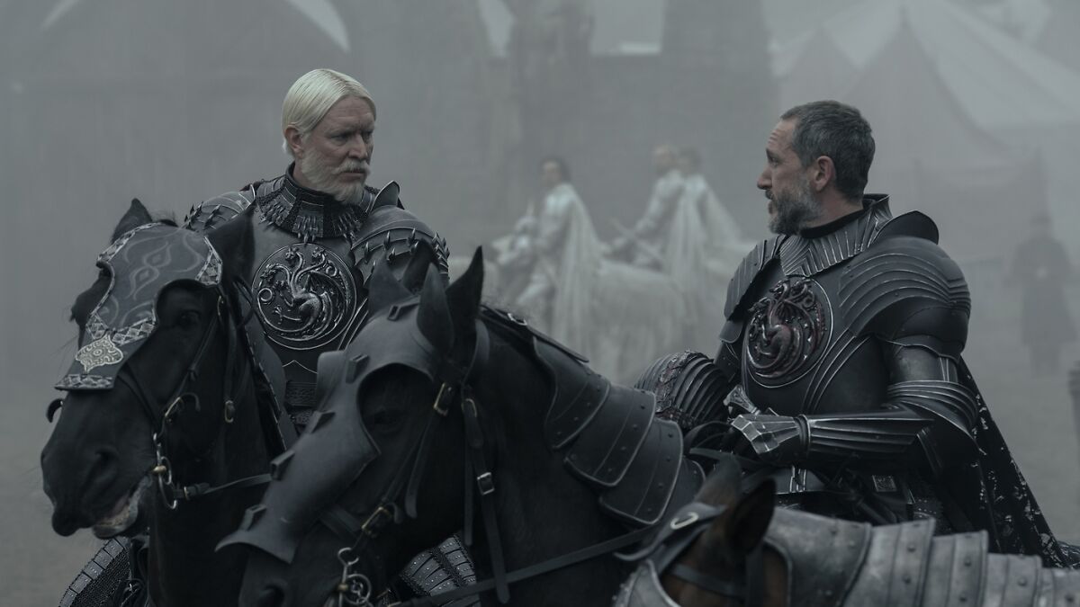 Prince Baelor Targaryen, played by Bertie Carvel, enters the playing field as a last-minute addition to Dunk’s side. The heir to the Iron Throne and Hand of the King is a capable fighter, having broken several spears during a joust with Dunk’s mentor, Ser Arlan of Pennytree.