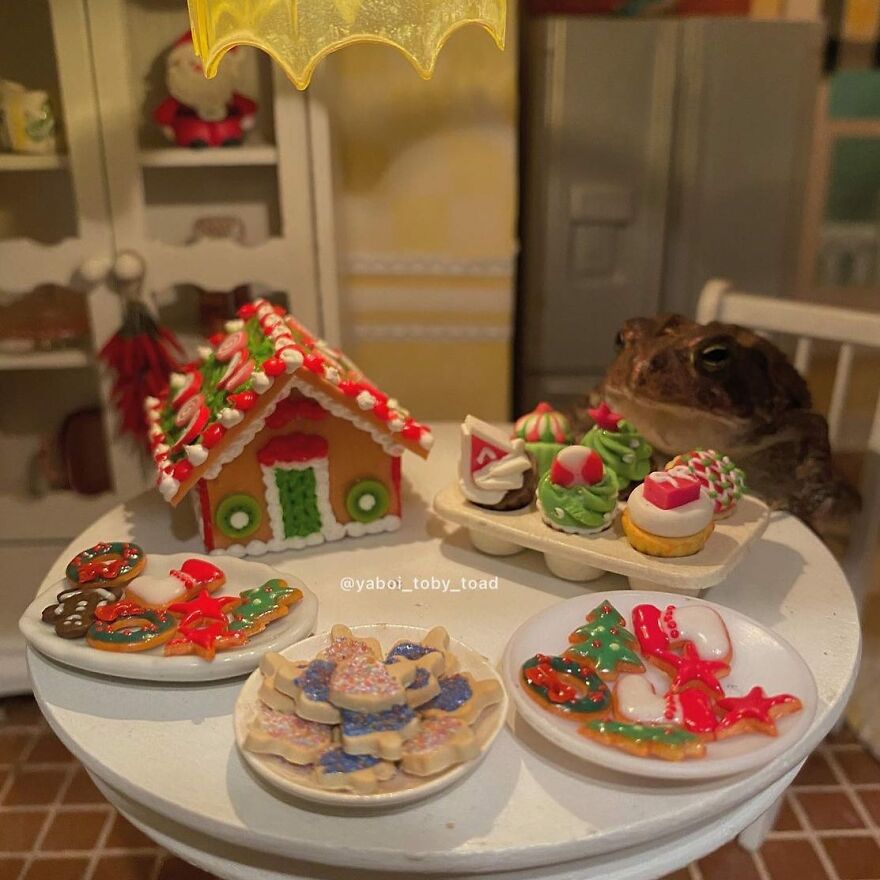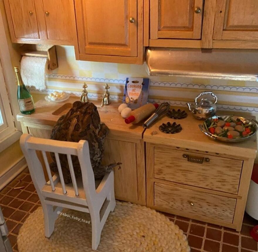 Meet Toby, a grumpy cute toad that inspired this woman to revive her dollhouse. On the Instagram page, this creator shares images of Toby living an old man's life, posing for cute pictures. You can see him taking a shower, selling some pies, or even taking a bathroom break.