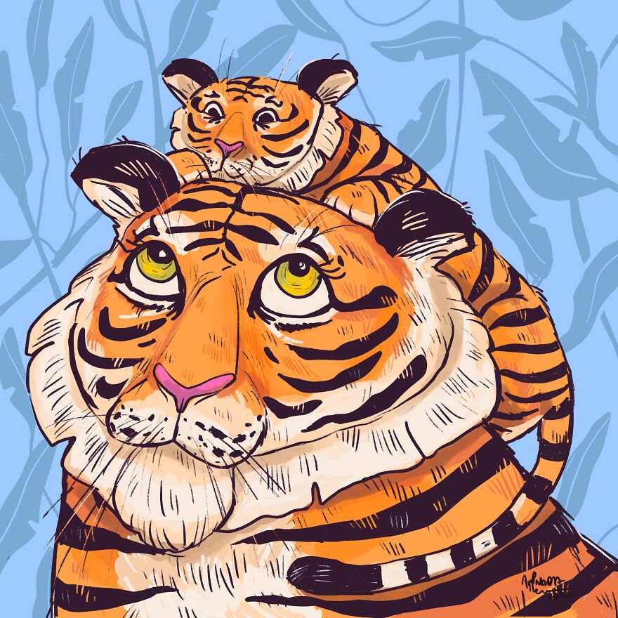 I guess much of my work reflects my mood. There were times I genuinely needed a break or an intimate conversation with someone. Most importantly, I yearned for a hug from someone, assuring me with the cliché, "everything is going to be fine." This very thought inspired the idea, underscoring the power of a hug. Since my audience appreciates how I draw animals, I leaned into this sentiment, illustrating my yearning for a hug. I adore that many animals hug or huddle together, radiating warmth. Therefore, I wanted to create 12 images to remind fellow humans that they are loved and someone out there is ready to offer a comforting hug.