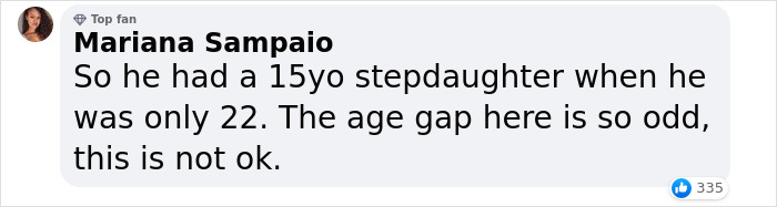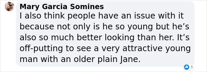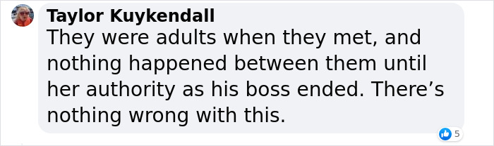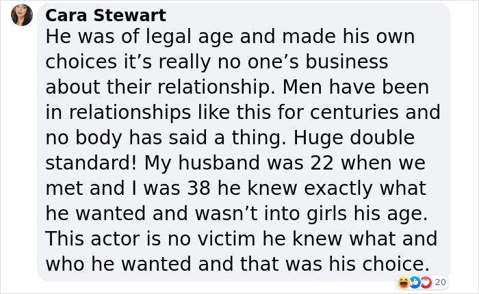 Load More Replies...It’s never gonna not be weird to me that a 42 year old looked an 18 year old and thought it was appropriate to start a relationship with him. It’s totally different stages of life, I mean there are 18 year olds still in school. I don’t care how ‘mature’ someone seems there is a lot to be said for actual life experience. It’s very creepy especially since she was directing him and no amount of reframing it now as something romantic will make me feel differently about it.