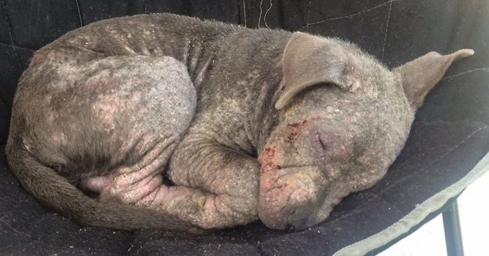 “He was a giant, bloody scab,” Stacey Greenwald, a volunteer within Friends to the Forlorn Pitbull Rescue, told The Dodo. Greenwald agreed to foster Dempsey until he gets better, treating him with antibiotics and medicated baths. Most importantly, she gave Dempsey lots of love and in just three weeks, the pittie started getting better.