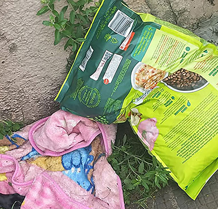 The dog was found by Lais Chesine Monfrinato with a blanket, some food and a note “I am sorry, please take care of her”