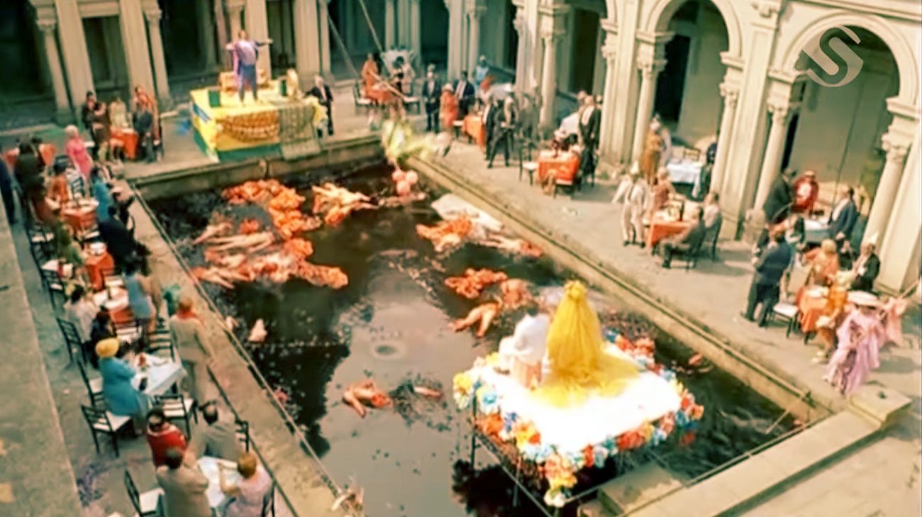 This is The Swingers' Tiki Palace in Birmingham, Alabama. The owner was convicted of tax evasion and hiring a hitman to kill his wife's lover. So, basically he was living the exact sort of life you would expect someone with a giant Playboy pool to be living...