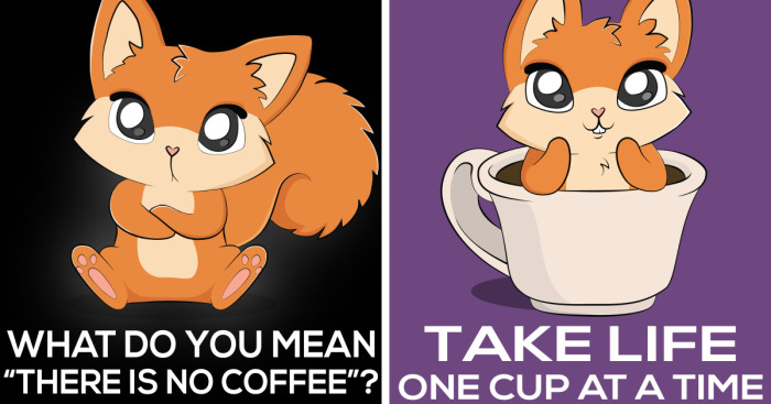 There are lots of t-shirt designs; however, most of them are just boring text. I strive to make the cutest and the funniest T-shirt designs ever created so that you, coffee lovers, can proudly wear them... someday. This is my progress so far. What do you think? Should I continue to expand the t-shirt collection and do my best to reach the masses?