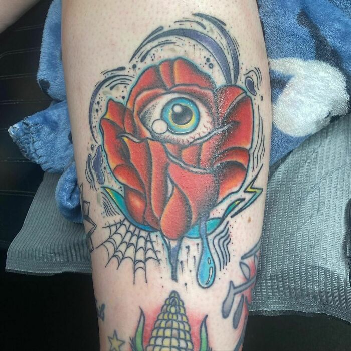 Abstract Thigh Eye Tattoo