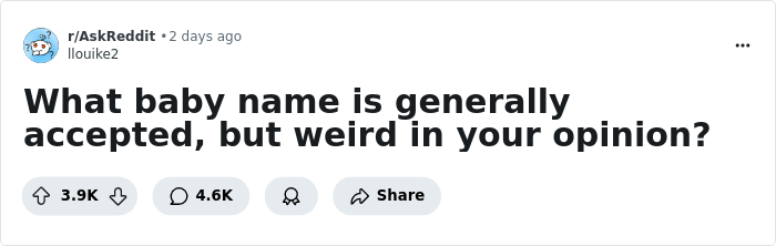 For some, a name can seem completely normal and they wouldn’t bat an eye seeing it in the wild, while for others, the same name can seem out of the ordinary. That’s what today’s list is about – names that seem to be generally accepted, but still seem odd for some folks.