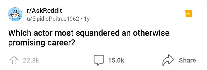 Reddit user ElpidioPoitras1962 made a post on the platform, asking everyone, "Which actor most squandered an otherwise promising career?" People immediately started naming celebrities and their bad deeds, so we decided to go through the discussion (which already consists of 15K comments) and see who stood out in this online trial.
