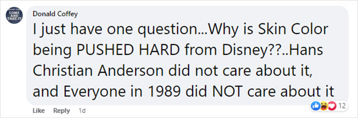 Load More Replies...The comments on here are insane. It’s a disney-fied version of a Danish fictional character based on a mythical being. Who the f**k cares about the race of the actor (other than proud boy racist twats).