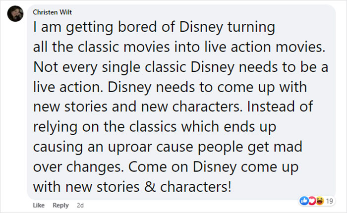 Load More Replies...When will Disney stop with all the unnecessary “live action” remakes and make better new stories? Disney has been losing its charm for the past few years and each new movie sucks more than the previous