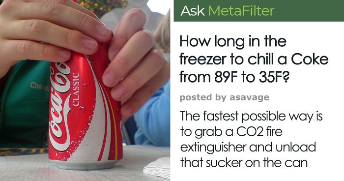 In 2006 when somebody asked on MetaFilter how long would he have to wait until freezer chills his can of Coke, the man who is known for testing out his theories responded.