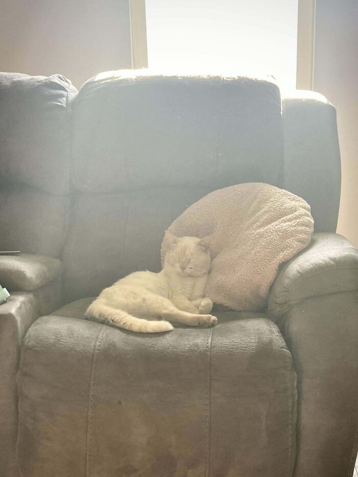 After 5 Years, My Cat Finally Deemed Me Worthy And Hopped On My Lap! 😭🙏