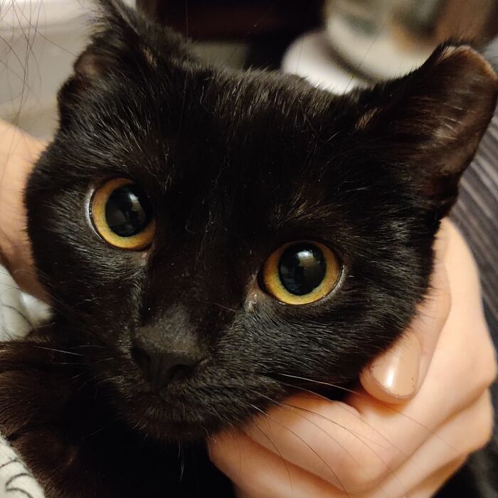 My Black Kitten I Adopted Last Week Looks Like She Has “White Eyeliner” On Her Eyes