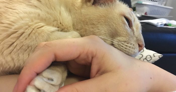 13-year Old Shelter Cat Gets Adopted, Can’t Fall Asleep Unless His Human Holds His Paw