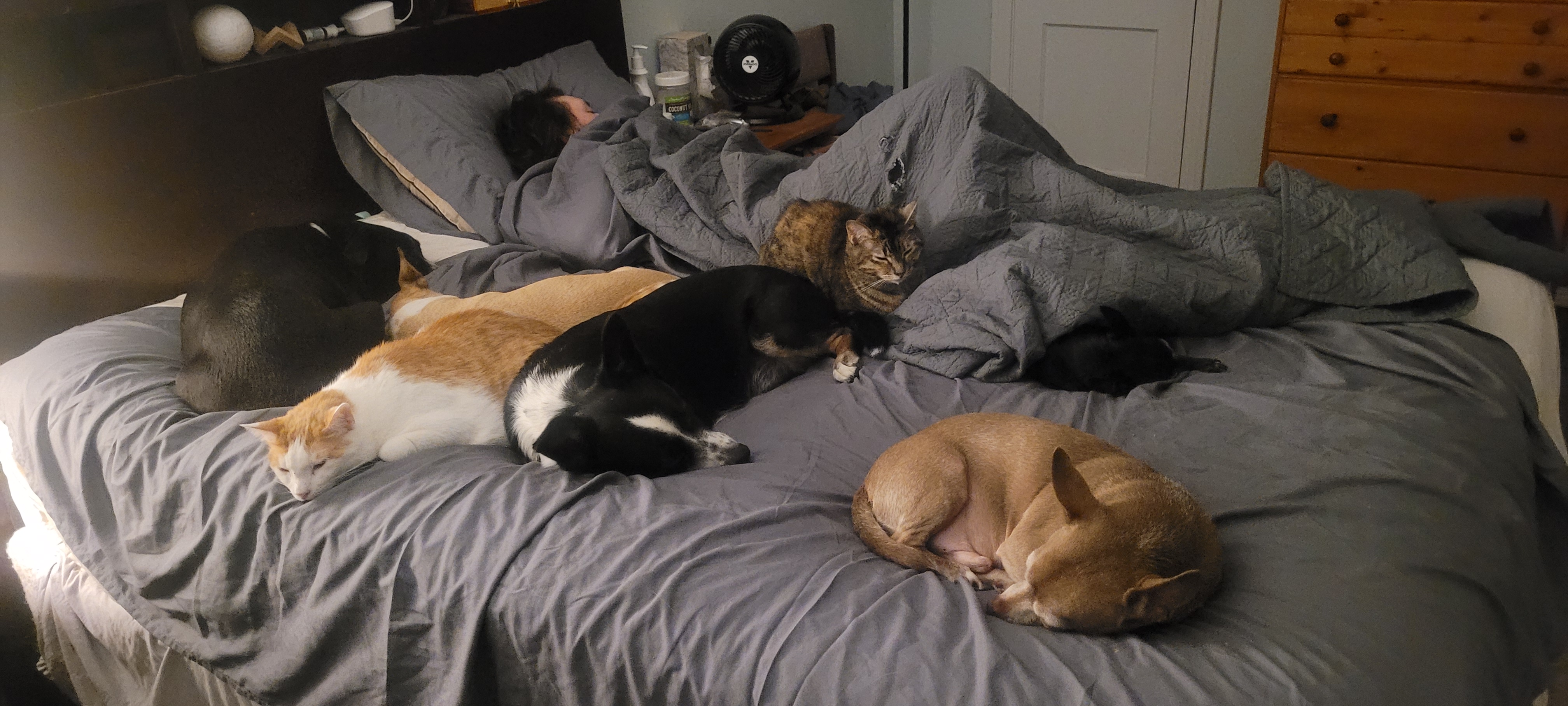 Everybody's Got These Great Pictures Of Their People Sleeping With Their Pets And I'm Over Here Stuck With This Mess